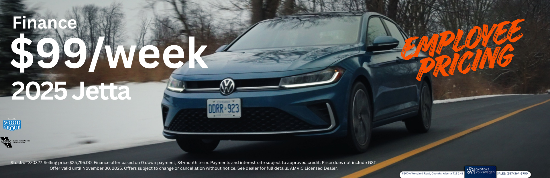 Take advantage of Employee Pricing on the sporty and efficient 2025 Volkswagen Jetta -now available for just $99/week on approved credit!